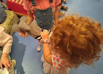 Die Kinder der Eichhörnchengruppe erlebten das Buch „Dr. Maus kommt heut ins Haus“ auf der Buchstartbühne