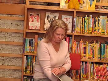 Danach konnten sich die Kinder Bilderbücher aussuchen. Sonja Humer las aus „Ich bin MäuseKatzenBärenStark“ von Burny Bos und Hans de Beer, „He Duda“ von Jon Blake und Axel Scheffler, sowie auf besonderen Wunsch der Kinder auch noch „Der Besuch“ von Antje Damm.