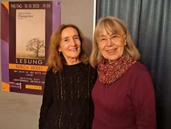 Patricia Brooks, die jahrelang in der Literaturgesellschaft Klosterneuburg mitwirkte, kam am Freitag, 10. Oktober 2025 auf Einladung der bibliothek st. martin wieder einmal nach Klosterneuburg. Sie las aus ihrem Roman „Flussgeister“, einer Geschichte, die ganz in der Nähe der Pfarre St. Martin am Ufer der Donau spielt, einer Gegend, die die Autorin seit ihrer Jugend schätzt und immer wieder besucht. Der Roman handelt von zwei Außenseitern, deren zufällige Freundschaft einen Wendepunkt in ihre Leben bringt. Schließlich gab die Autorin auch Kostproben ihrer Gedichte aus ihrem Lyrikband „Luna Park“. Uschi Swoboda bedankte sich bei Patricia Brooks mit zwei Lyrikbändchen des Österreichischen Bibliothekswerks: „Seitenweise Glück“ und „Ans Glück glauben“. Im Anschluss signierte Patricia Brooks viele Bücher und gesellte sich dann zu den zahlreich erschienenen Gästen der Bibliothek am Buffet.