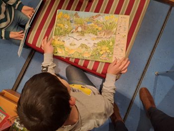 Am Dienstag, 9. Dezember 2025, kamen die Schüler*innen der ASO Klosterneuburg in die Bibliothek. Am Adventkranz brannten schon 2 Kerzen und Uschi Swoboda hatte auch ein Weihnachtsbuch vorbereitet: „Freue dich, Christkind kommt bald“ von Gertrud Fussenegger und Piotr Stolarczyk.