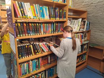 Als Einstiegsthema hatten die Bibliothekarinnen diesmal „Serien“ gewählt, keine Onlineserien, sondern Buchserien. Da konnten die Schülerinnen und Schüler einige nennen, viele gibt es in der bibliothek st. martin, andere – aus Platzgründen – leider nicht. Dann wurden bekannte und auch etliche nicht so bekannte Serien den Kindern vorgestellt, bevor sie selbst entscheiden konnten, welche Bücher sie mit nach Hause nehmen wollten.