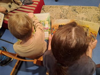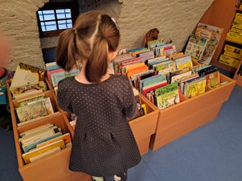 Nach der spannenden Geschichte auf der Buchstartbühne wurden viele Bücher zum Mitnehmen in den Kindergarten aus dem Bilderbuchtrog ausgewählt.