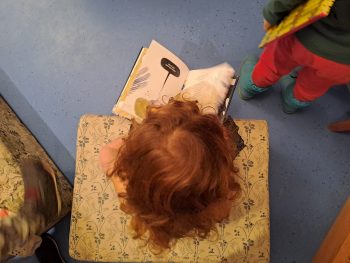 Mit Begeisterung wurden im Anschluss wieder Bücher für den Kindergarten ausgesucht und auch der Scanner zum Einlesen ausprobiert.